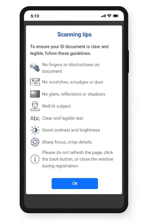 Ensure the ID is accepted (government-issued ID).